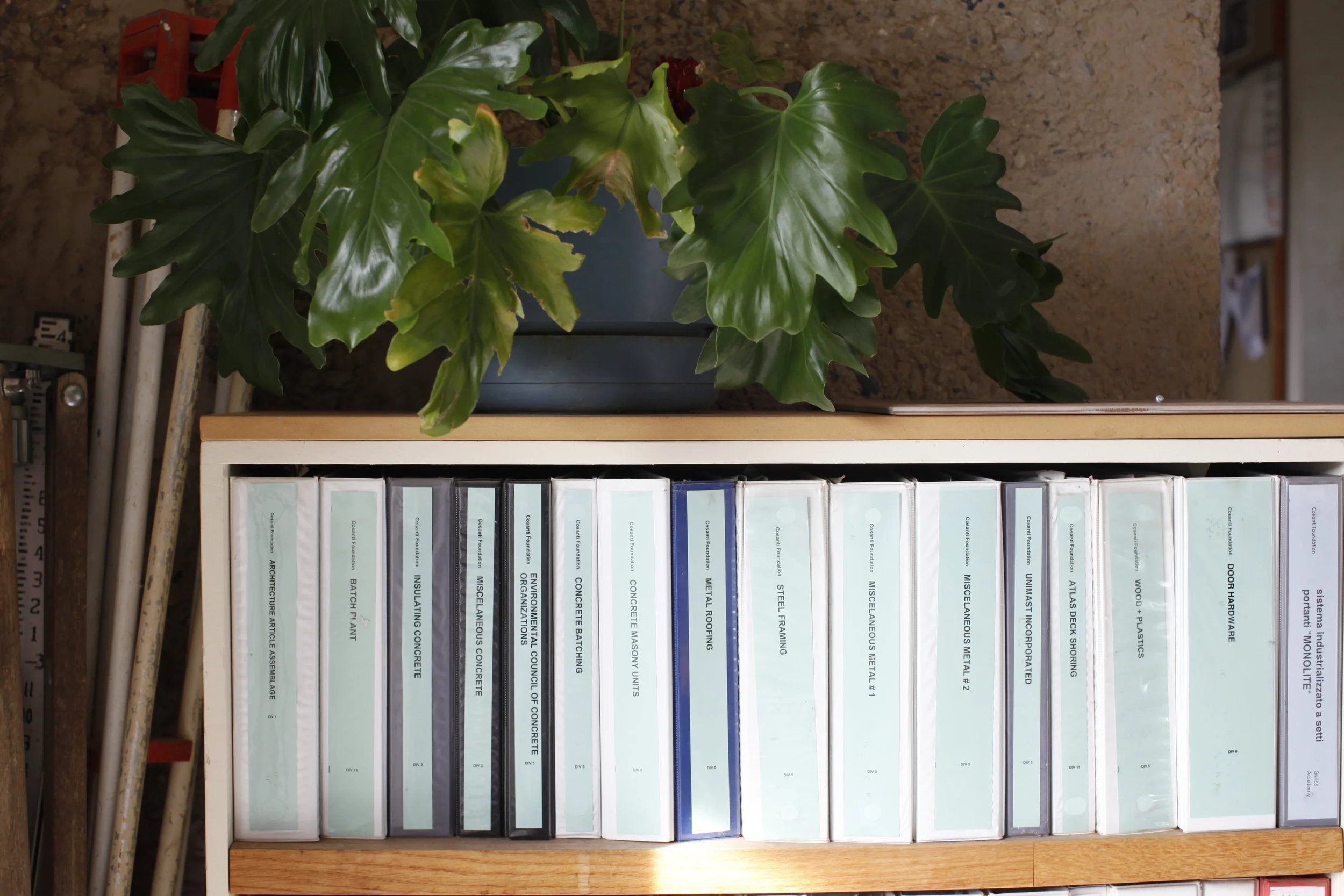 one morning, up early to take photos with the rising sun hitting the concrete, I wandered through the empty city – home to 60 or so people but deserted at that hour, except for a bobcat which padded noiselessly past. inside the silent, sunlit rooms and offices, Soleri's visions of soaring arcologies hung on the walls and filled endless, carefully preserved scrolls. in one room, an architectural model of one of his hyperstructures caught the morning light, its monumental scale lit up over the miniature landscape